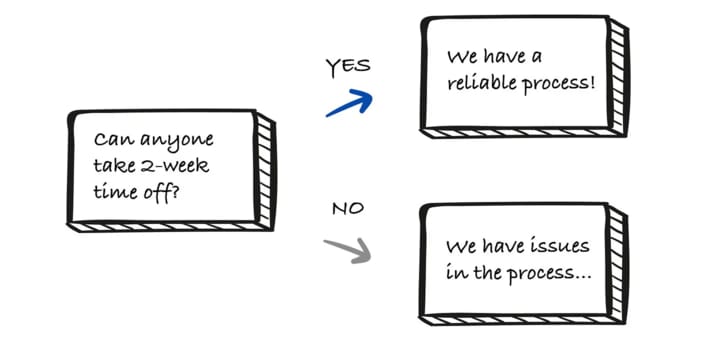 I don't think it's a controversial take to say everyone on your team, including you, should be able to take two weeks off without everything falling apart. But if the idea of a longer vacation makes you sweat a little, have a look at this article and see why that might be a sign of deeper issues in your team.