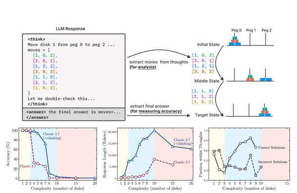 Apple challenges the idea that reasoning AI models can reason at all. Their new research shows that while these language models can handle simple tasks, they fall apart under any complexity and struggle even when handed the correct algorithm.